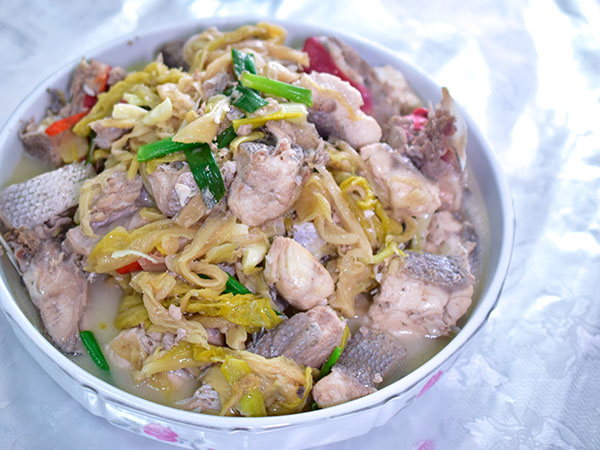 食材:鮮魚1尾、酸菜花椰菜、蔥1小把