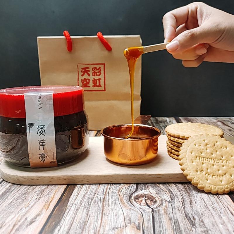 「我們的麥芽膏跟市面的麥芽糖不一樣,原料僅有紅小麥、圓糯米,完全不添加糖,甘甜帶點微酸的古早滋味,舀來直接吃就很棒!」