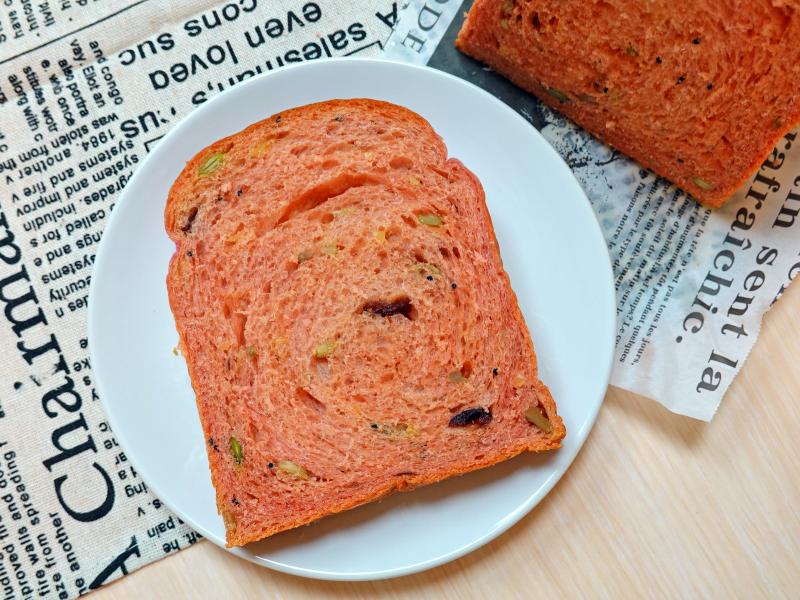 主打選用在地農產新鮮製作,將在地農產品賦於多一層次的價值。烘培坊研發製作的紅龍果堅果吐司,選用在地紅龍果新鮮製作,吐司呈現粉紅色的色澤,吃進嘴裡,慢慢散發淡淡的紅龍果風味,鬆軟的口感越嚼越香,還帶著微微的堅果香氣。想吃熱騰騰的吐司,可放進已熱的電鍋蒸1~2分鐘,或噴上少許水放進已預熱的烤箱微烤,會像剛出爐的吐司。