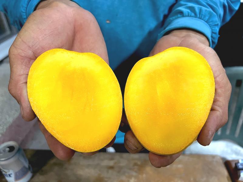 今年也有大突破,農場負責人楊敏志大哥,利用務農空檔不停開發新的芒果品種,經歷三年的時間鑽研,「聖德龍」芒果終於上市了。楊大哥說:聖德龍芒果為緬甸品種,目前在台灣市場量稀少,若有的話也非原生品種居多。之可以順利成功,歸功於本身園區管理方式,堅持以草生栽培,保持果園水土,增加土壤營養,讓果樹能更好的生長、適時保留徒長枝,讓果實能獲取更多養份,預防病蟲害,都是基本條件。