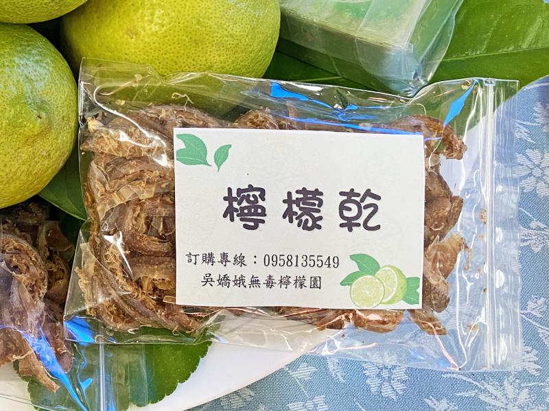 從新鮮檸檬,製成美味檸檬乾需要將近半個月的時間,新鮮檸檬切片去子,使用鹽、白糖、梅粉,每天重複繁瑣的工序,將檸檬水份收乾、曝曬製成果乾。果肉細緻軟硬適中,扎實有咬勁,獨特的甘甜中帶有微酸的風味。