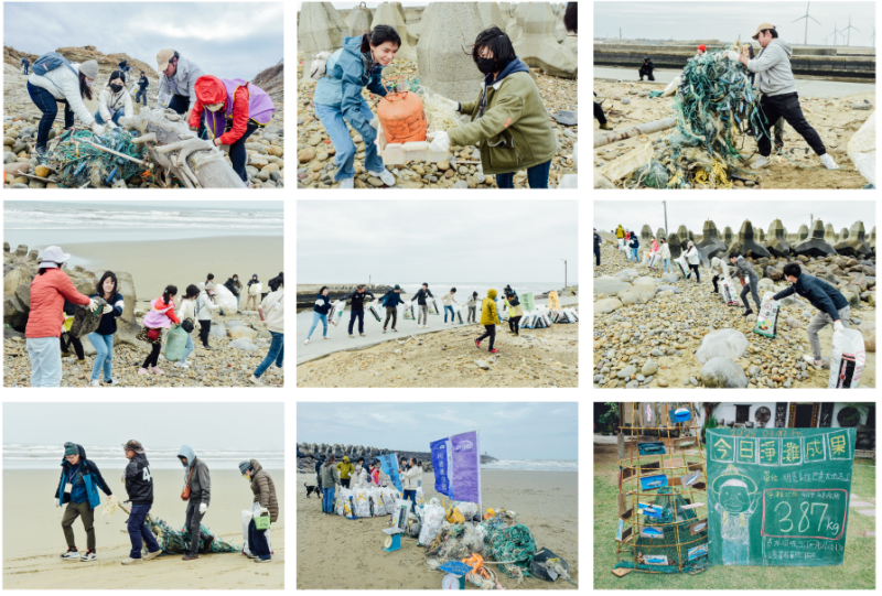 風勢漸強,涼意滲透衣袖,為淨灘增添挑戰,然而志工們熱情不減,仔細搜尋著每個角落。有人手持小刀與夥伴將深陷石縫的漁網切斷拉出;有人蹲在石頭間彎腰細篩破碎圾垃;也有人步步穩走,搬運大型塑膠廢棄物、浮球離開石岸,就算雙手沾滿泥沙,志工們依舊專注,彼此協作,讓這片海岸恢復潔淨。雖然我們深知這片海洋垃圾難以真正「撿完」,但每一次的彎腰拾起,都是力行改變的起點,向減塑與零廢棄的未來邁進。隨著時間推移,大家齊心合力一上午共清運了387公斤的垃圾,實在反映志工們辛勞的成果,為海岸線帶來片刻的潔淨。