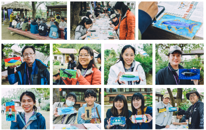 以藝術創作化為軟性溝通的媒介,從「減廢」到「再生」作為行動發想,傳遞永續環保精神。運用回收的廢棄浮球,轉化為充滿想像力的藝術作品。志工專注地創作,在畫板上留下身體力行的感動,有身邊並肩淨灘夥伴的剪影,有對蔚藍海洋的深切期許。每一筆觸,都象徵著從拾起垃圾到再生應用的可能,也喚起人們對資源循環的反思。