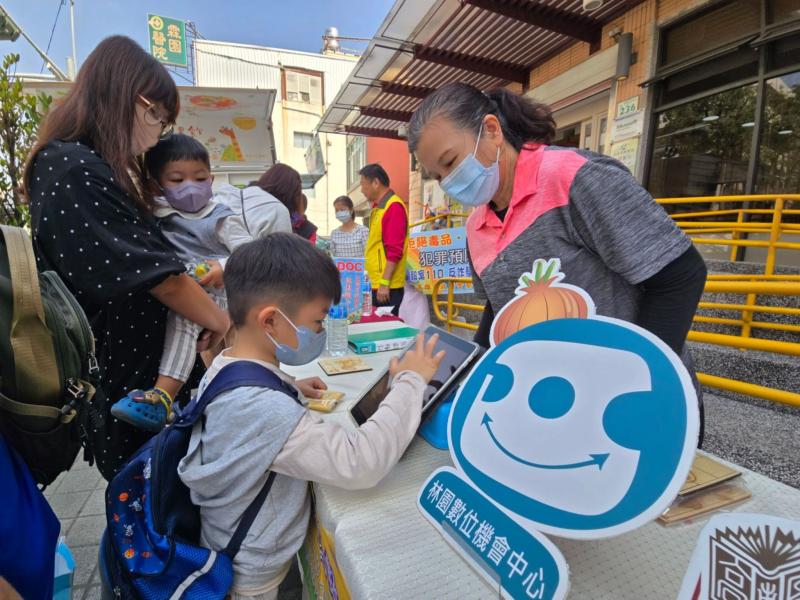 另外,林園數位機會中心透過自製文創拼圖小遊戲,提供各項數位課程成果展示,並推廣電子書閱讀,吸引民眾認識各項數位資源;林園紅樹林保育學會展示狗尾草這種常見但有趣的植物給民眾認識,並利用它沾黏的的特性與小朋友作互動小遊戲,讓學習植物生態變得有趣;林園分局偵查隊及交通局路老師則帶來反詐騙及交通安全宣導,守護民眾生命財產的安全。