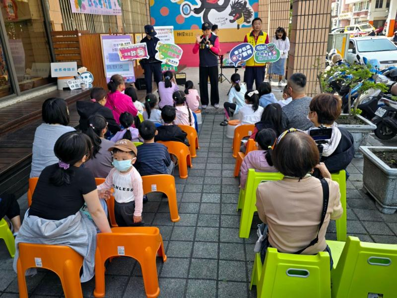 為響應世界母語日,高市圖林園分館協同林園數位機會中心、林園紅樹林保育學會、林園分局偵查隊及交通局路老師等團體單位,於今(一)日上午在林園分館室外廣場辦理結合台語故事、台語音樂、行動書車與毛毛的閱讀闖關活動,參與人次約百餘人,親子一同參與多元有趣的母語閱讀體驗,活動熱鬧溫馨,闖關成功的小朋友還能帶手工造型汽球回家。(見圖)