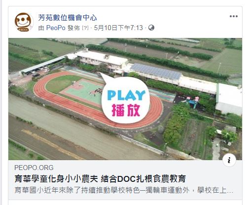 其中空拍機課程更是吸引許多社區民眾參加,學校也與DOC結合,運用空拍機紀錄推動食農教育的過程及成果,並與芳苑農會配合,安排全校學生利用學校旁的閒置農地,由農事達人親自示範如何種植農作物,每個同學將希望的種子親自種下,學生利用課間活動時間悉心照顧自己的農作物最後由學生親自烹煮,享受自己辛苦的成果。六年級學生陳嘉睿說:「我以為種菜很簡單,種子灑下去定時澆水就可以了,但是其實過程不容易!還要施肥、抓蟲、澆水等等,農夫真辛苦!」