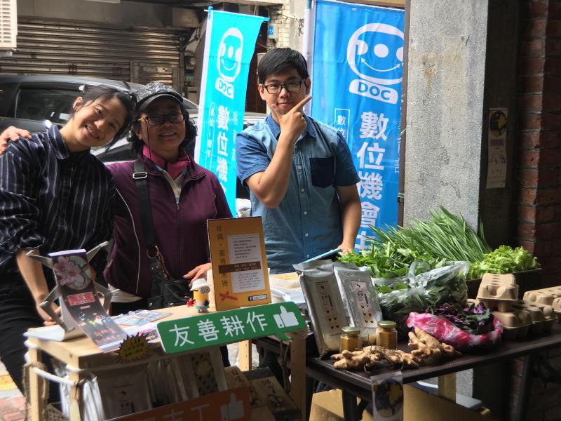 市集活動有來自於教育部羅浮數位機會中心和復興數位機會中心的泰雅族人,長期從事公益服務的三芝數位機會中心,和來自平溪數位機會中心所輔導成立的雙溪小農合作社。教育部偏鄉數位計畫強調透過學習課程,運用資訊能力典藏社區文化面,在經濟面開拓偏鄉民眾的數位商機。三光五月桃合作社在過去五年來,從三光國小親師生合作農場,透過學習網路行銷技能,蛻變成正式的合作社組織,由38位農友共同合作,透過提高品質和穩定產量,創造出成功的部落品牌。高有志社長特別感謝各界給予的幫助,也期待未來部落的小孩能夠以父母親所開拓的品牌為榮。