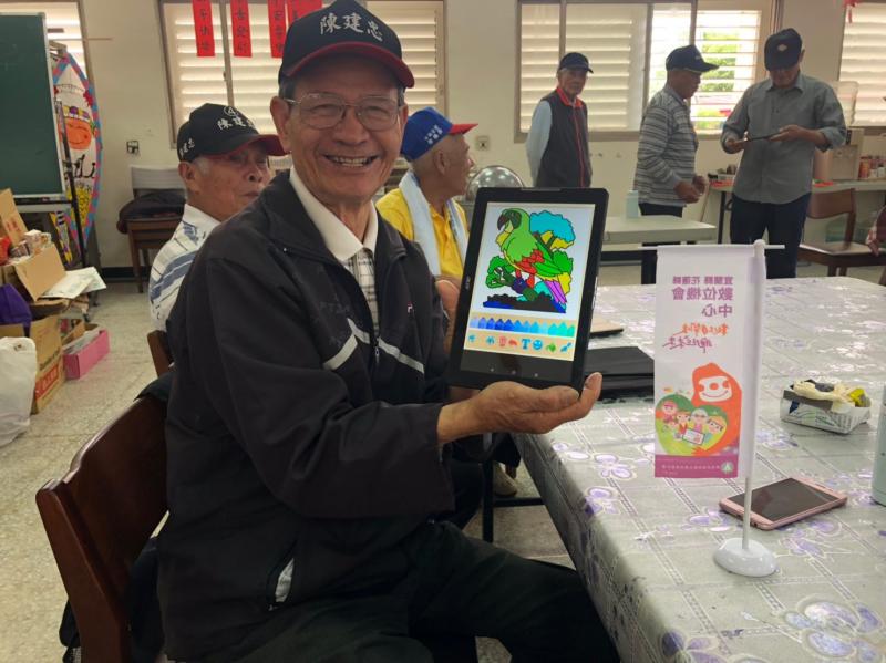 這堂課程上課的學員人數已將近30位學員,社區的長者都很踴躍來學習平板的課程,老師開始介紹平板的基本操作後,有些學員的學習力很好,很快就知道怎麼運用及操作,也會跟旁邊的學員一起討論;在老師介紹拍照功能時,學員們都對拍照很感興趣,還會主動請老師一起入鏡拍照;在課程中學員們還是最喜歡平板小遊戲的體驗,透過小遊戲讓學員們動動頭腦訓練手部肌肉,增加遊玩的樂趣,看這學員們玩得很開心的表情真的是很棒的感覺!! 最後老師也介紹的繪圖軟體讓學員們開始動手著色,讓年長的學員可以透過自己的創意發想來塗顏色,最後完成作品後很開心的拍照記錄自己的成績。