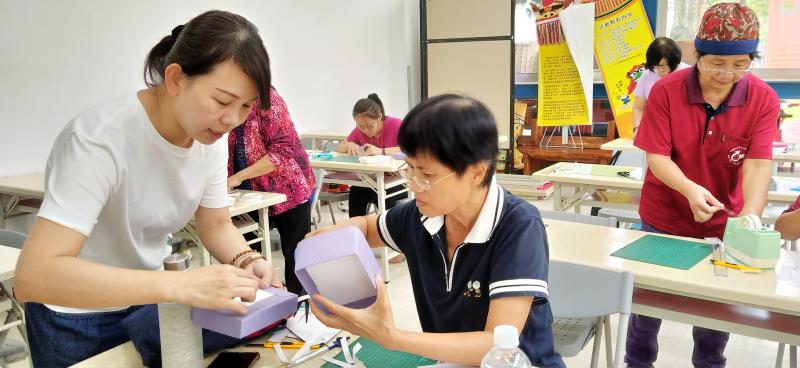 老師利用客家開口師的圖騰,設計包裝紙盒,包裝盒可結合桌遊紙牌的放置。