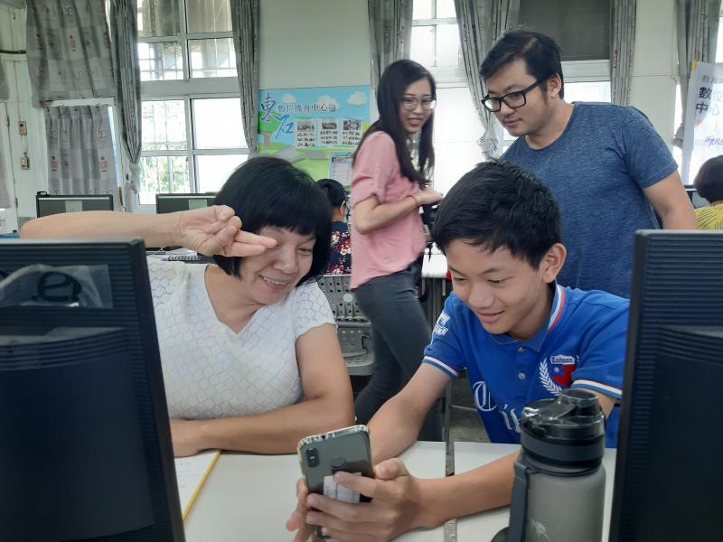 學員操作練習時間,看到孩子幫媽媽拍下俏皮動作照片。