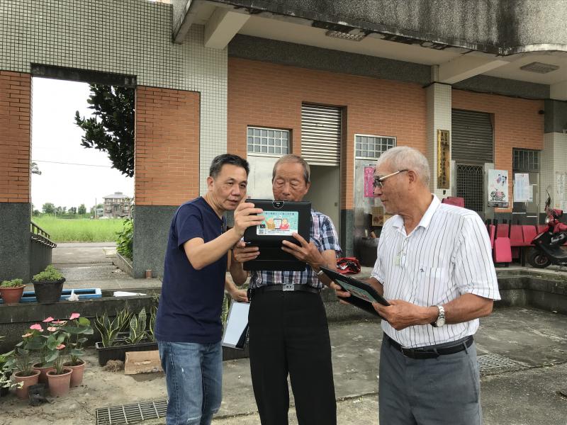 活動照片 精選照片 宣導活動 ::: <上一則 返回列表 下一則> 長輩的平板外拍 發布日期:2019-07-25 人氣:321 2019/06/04員山DOC在七賢社區開設「平板電腦初體驗」輔導團課程,阿公們第一次學習平板電腦,老師非常有耐心地一次又一次地示範,相機功能更實際走到戶外拍攝,讓阿公們也能體驗到電腦世界的樂趣。 <上一則 返回列表 下一則>
