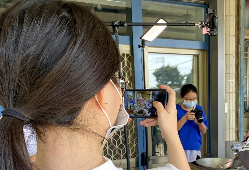 鏡頭下的里港課程。學員透過鏡頭學習動、靜態攝影,並嘗試於數道美食中,用不同距離和各種角度,拍下影片和照片,豐富後製剪輯時所需素材。
