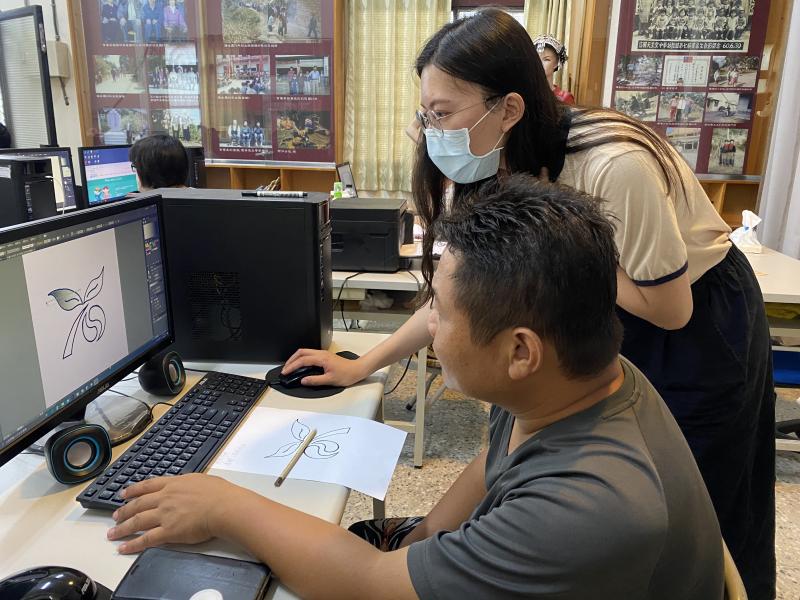 視覺商標設計課程。藉由手繪LOGO初稿設計,掃描致電腦用繪圖軟體上色,學員用店名英文字,轉成圖像式,再用色塊區分字元,挺有創意又好記。