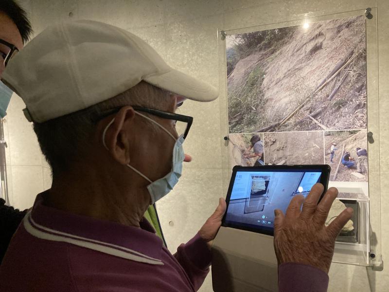 學員們化身考古隊員帶著平板一起到左鎮化石園區拍照記錄菜寮溪文化