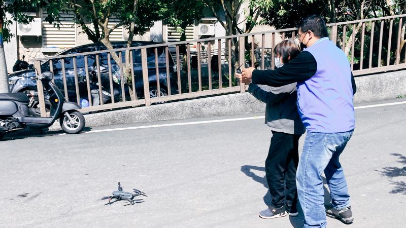 萬榮DOC開設「空拍機體驗應用」課程,講師正在指導學員操作空拍機飛行。