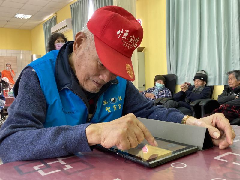 利用平板遊戲刺激長輩一起來動動手指頭