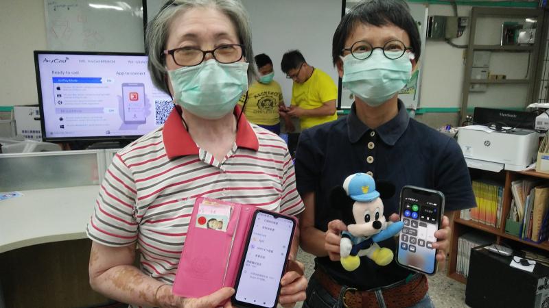 藍牙音響,內建藍牙連線,學員連線後,可以隨心播放音樂,學員手上的是造型藍牙喇叭,正在播放音樂。