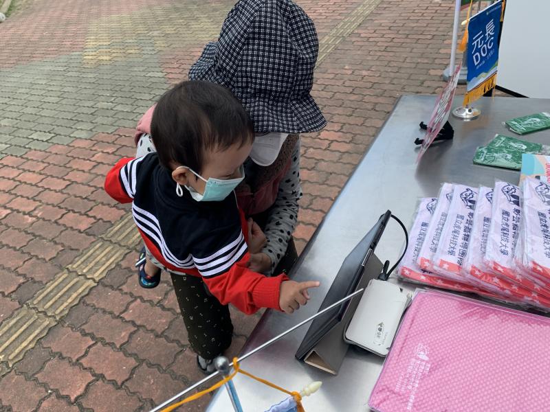 元長DOC辦理推廣活動,家長、社區長輩們都很熱情參與活動,看著長輩們玩戳戳樂活動,小小孩也非常好奇,由媽媽帶著小小孩,引導孩子操作平板電腦操作,母親就是孩子的啟蒙老師,陪伴孩子學習及體驗各種活動。