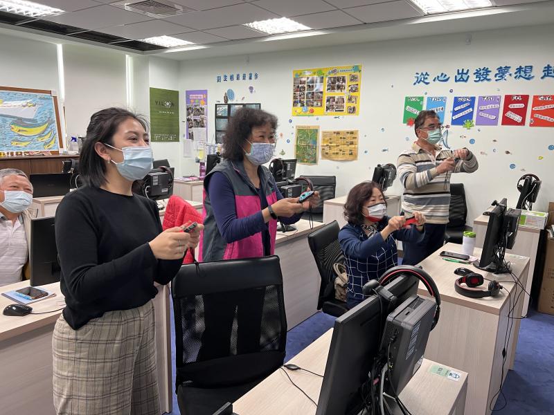 DOC開設數位保健健康雲課程,老師讓學員體驗SWITCH遊戲,阿嬤說:學會了回家可以跟孫子打PK賽啦!