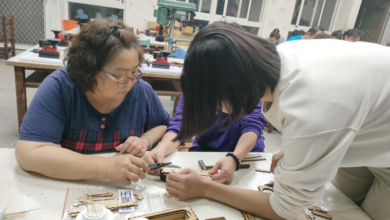 群淵老師講解得很清楚步驟簡單,讓我們一步一步實作也有雅琦助教幫忙,整個學習過程讓人很安心。最開心的是我現在可以自己操作,不再一直麻煩子女也多了一份自信。其中,最讓我印象深刻的是參加「雷射雕刻」課程,第一次從頭到尾把作品做出來,也是初次體驗雷射雕刻原理,覺得非常有成就感。