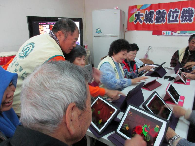 接下駐點人員工作後,讓我感到最無力的是招生的部份,或許因鄉下地方,大部份為務農人家,白天在田裡工作一天累了,晚上想好好休息;也或許因在地住的都是長者(銀髮族),他們對數位沒有興趣,也認為自己用不到,所以DOC面臨沒有學員的窘境。於是我們決定走出去,懷著忐忑不安的心我們來到了大城鄉老人文康中心,3月11日開設「數位產品應用課程-相機、手機、平板三兄弟」,結果竟是讓人出乎意料的熱絡,阿公阿嬤們七手八腳的玩著ipad,互相競賽、看誰遊戲得分比較高;有些玩拍照或攝影,阿嬤們互相拍照,但因角度抓不準,有些頭或身體都不見了,阿嬤們各個哀嚎著「哎呦~~我ㄟ頭那ㄟ存一半啊!」阿公阿嬤們都玩得很開心。看著長者們開心的玩著平板,終於讓一顆忐忑不安的心定了下來,也鬆了一口氣。大城DOC與大城鄉老人文康中心合作辦理資訊課程,邀請講師來教導長輩們使用平板或手機下載APP遊戲或連結健康操網站,讓阿公阿嬤們一方面活動筋骨,一方面也能刺激腦部。