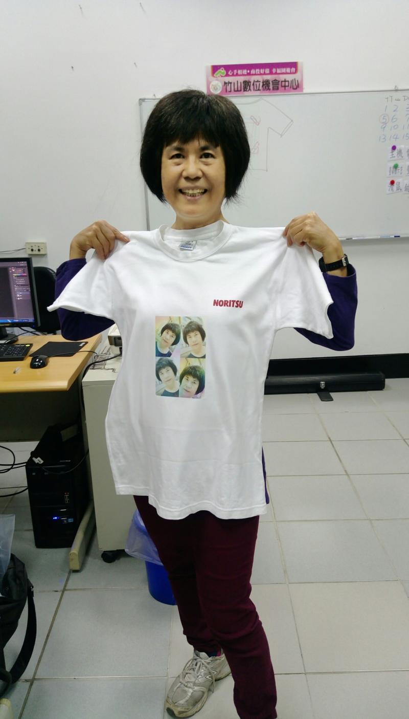 美圖秀秀上完,已經有很多素材了,再回到電腦教室上莊老師電腦修圖課,找到喜歡的圖片,輸入自己要加入的文字,做出一件獨一無二屬於自己的T恤,同學都問我,衣服前面圖案的女士是我嗎?當然!當然是修很大,嘿嘿嘿!只保留美美的自己,絲毫看不出歲月留下的痕跡!