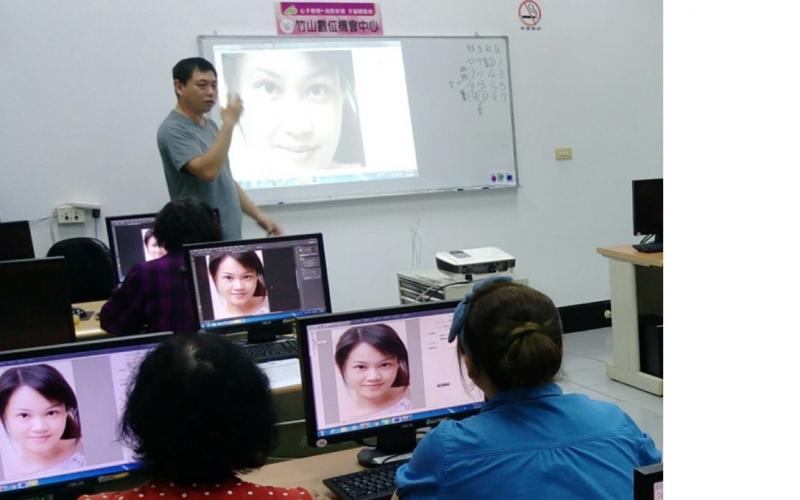 但是在好友的強力邀約並相互作伴之下,半推半就之下參與這次"竹山數位機會中心"所開的"修圖軟體課程及T恤印製"課程。課程第一天,我在下了班帶著疲憊又沉重的步伐匆匆忙忙趕到教室,看到幾位年長的學員,早已坐在電腦前慢慢摸索著,那種學而不倦的學習態度,讓我至今感觸頗深。心想,那份精神值得我學習,豈能當一個中途落跑放棄的學員呢?就這樣在老師的一個口令一個動作中摸索度過了一堂課。