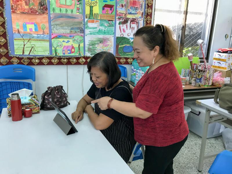 鄉下地方沒有什麼消遣,平常只能到附近鄰居家走走坐坐,每天的生活都是這樣,覺得很無趣,還好有電腦教室和老師與我作伴。我非常喜歡把照片印到杯子上的課程(熱轉印),每天用這個杯子喝水,都會讓我想起那天有趣的課程。我從拿滑鼠在空中揮,到現在已經可以跟上老師教學的進度,想想第一次上課,真的丟死人了。現在年紀有了,學習動作雖然沒有那麼快速,但是我都還是堅持一定要自己做完,因為這樣學到的能力才會是我的,作品更是自己的創意,我才能夠滿意。