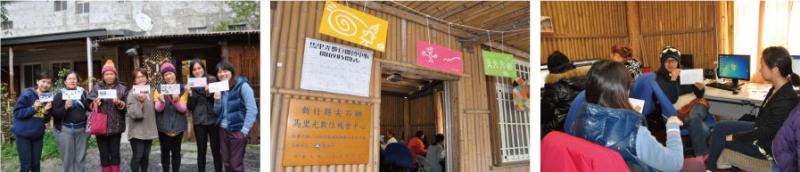 慕妮牧師與娬睞婦女工作小組經營馬里光五月桃多年,目前,五月桃的收穫已是馬里光地區最重要的經濟來源。慕妮牧師特別利用這次開設的課程,製作五月桃出貨的謝卡。為了影像去背方便,還特地以白壁報紙搭建臨時攝影棚,邀請娬睞婦女工作小組的媽媽們來拍照,做為五月桃訂購謝卡的製作素材。沒有當過模特兒的媽媽們,擺出採收桃子的Pose,表現非常專業。相信這張別出心裁的謝卡,一定會讓消費者對娬睞婦女工作小組與馬里光五月桃印象深刻。