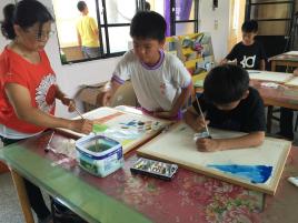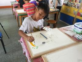 小朋友想著該畫什麼樣的題材