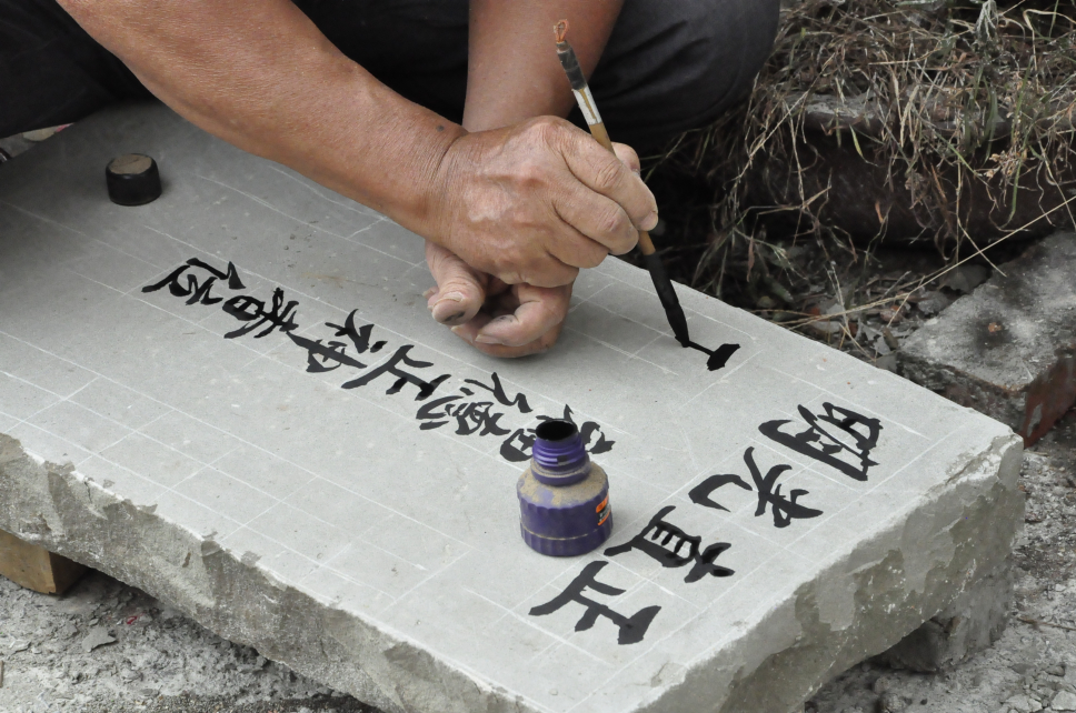 用毛筆畫下刻好痕跡的部分