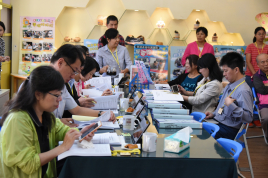 桌上擺滿訪視資料